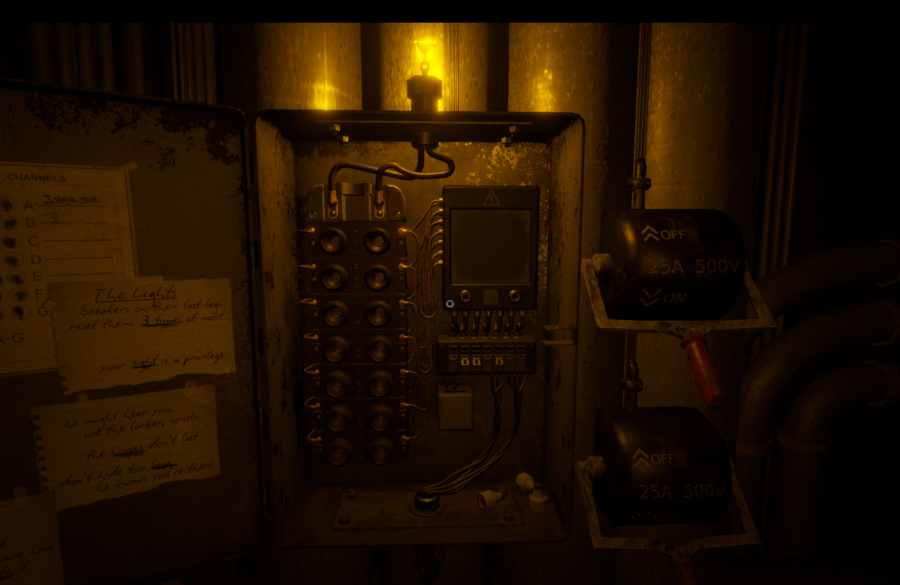 You are an electrician trapped in a collapsing facility, trying to fix the fusebox before something in the dark finds you.